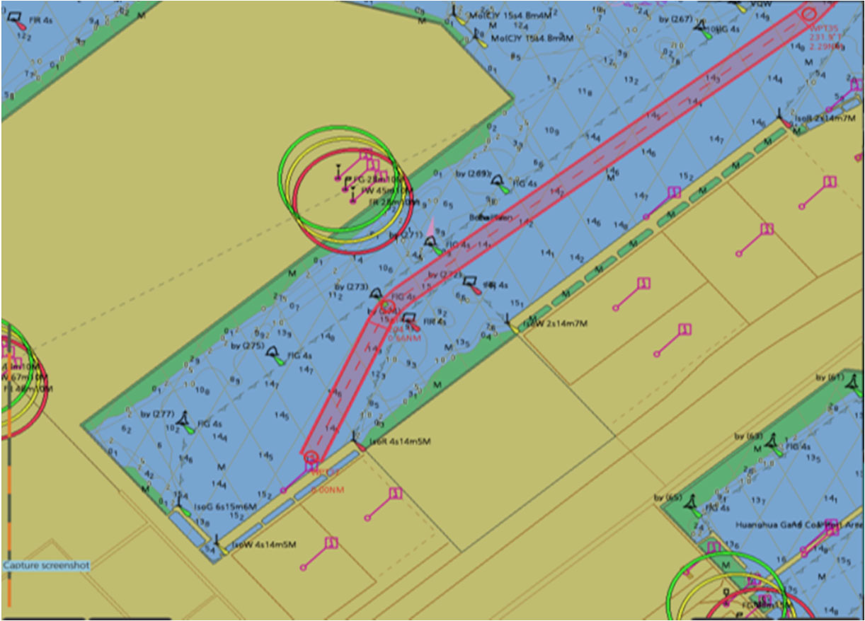 附图四:黄骅港电子海图航线/引航站/锚地/航道的示意图: