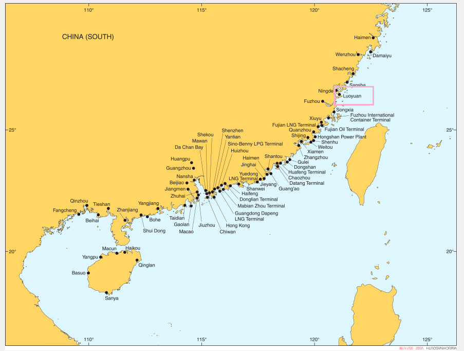 附图一:可门港在中国南方港口的大概位置(位于罗源湾内):