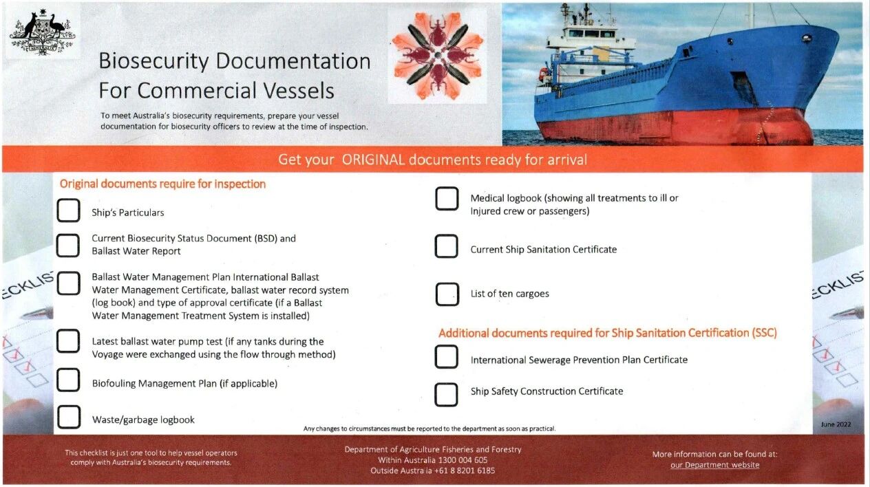 澳大利亚卫检通常被认为是AMSA检查的先头部队,如果卫检检查比较理想AMSA一般不会再来,一旦卫检检查不满意AMSA必然上船全面检查,有条船因连续三年没有船员用药记录被认定为记录造假AMSA全面检查后被滞留,做好充分的准备应检 兵来将挡水来土掩,按部就班 通过检查自然会水到渠成,这里就卫检检查的流程,卫检证书更新的注意事项,需要准备的材料,经常被查到的问题列举出来供大家参考