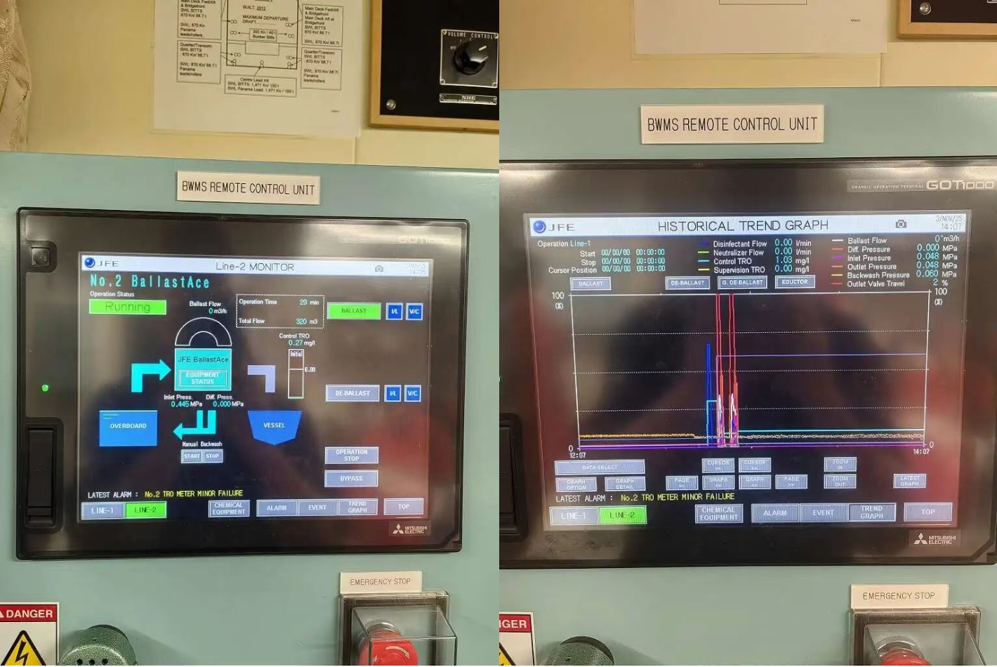 1.The BWMS monitoring system should record the challenging water quality by means of an alarm;