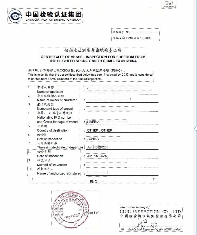 6-9月去过中国长江以北的港口的船舶需要离港前24小时由专业机构检查并持有专业机构签发的FSMC检查证书,持有证书后如果在9月底之后没有再去过俄罗斯远东以及中国长江以北的港口的船舶原有证书保持有效,高风险时段再次去过高风险区域原证书失效需要申请专业机构再次检查发证