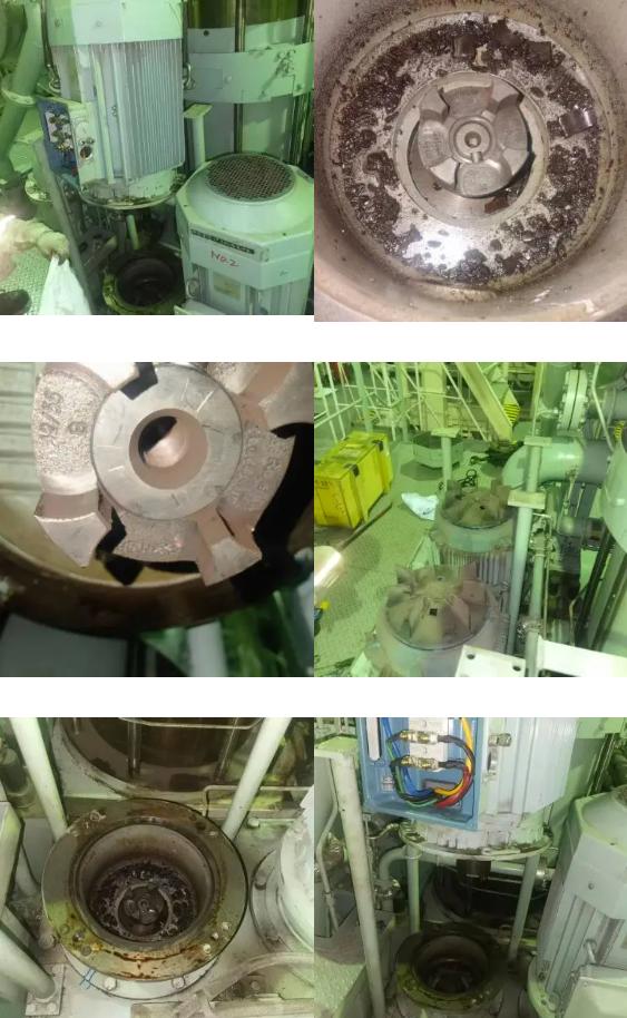 1. 在检查电动液压泵运行参数时发现,泵体振动值较历史数据异常升高(实测振动烈度达8.5mm/s,正常值≤5.0mm/s)。进一步拆解泵组后,发现电机和液压泵相连拷贝令的减震垫圈存在严重龟裂破损,丁腈橡胶材料老化剥落导致电机和液压泵拷贝令刚性接触。(本轮下水9年)