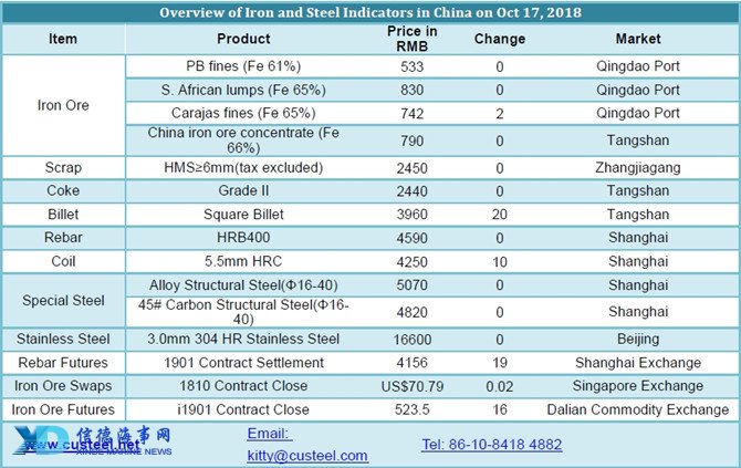 The imported iron ore market fluctuated in a narrow range today. The spot price at port remained unchanged in the morning compared with that of yesterday. In Shandong, PB fines, Assmang fines, PB lump and Ukrainian concentrate quoted at RMB540/tonne, RMB870/tonne, RMB745/tonne and RMB755/tonne. In Tangshan, MAC fines, Jimblebar fines and screened Newman lump priced at RMB530/tonne, RMB486/tonne and RMB780/tonne respectively. Traders said that steel mills’ procurement sentiment remained stable and prudent as the futures market shocked over the past 2 days. While trades were willing to shipment with the firm-up sentiment weakened.