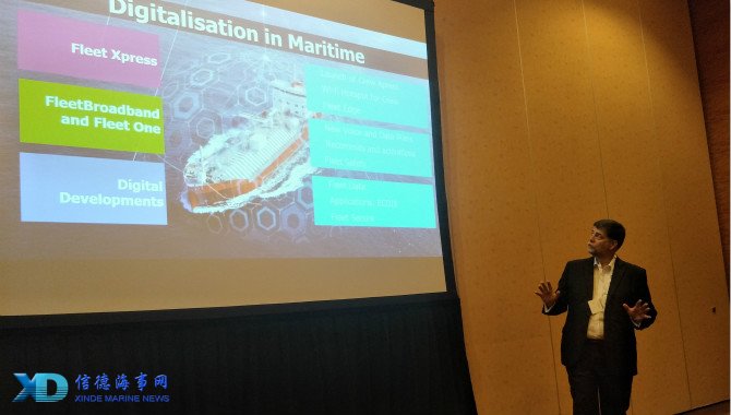 Ronald introduced the emerging “Didital Society” at sea, he said, “a company or an industry is only constrained by its imagination, its ambition, and of course, its access to reliable communications.” For this purpose, Inmarsat launched Fleet Data-the IOT Platform for shipping, which is an end to end fleet scalable, cost effective ship-to-shore data automation, with one installation, one single cloud for ship operator, data collected one time only, bandwidth included-no hidden cost and data easy to share across multiple parties.