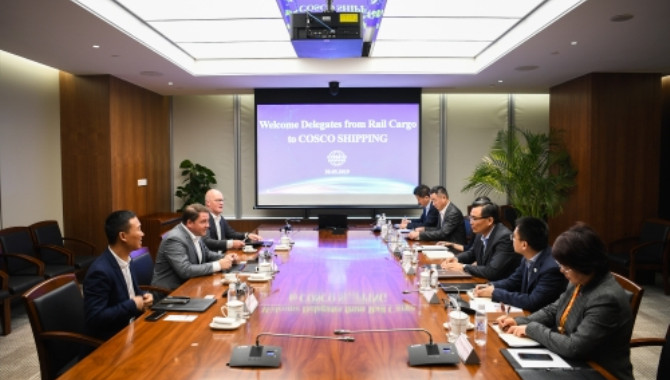 On the morning of 20th May, a delegation from Rail Cargo Austria Group (RCA) led by Mr. Thomas Kargl, member of the board of RCA, visited COSCO SHIPPING headquarters. Mr. Yu Zenggang, Executive Vice President of COSCO SHIPPING headquarters, met with the delegation, and the two sides had an in-depth discussion on shipping business.
