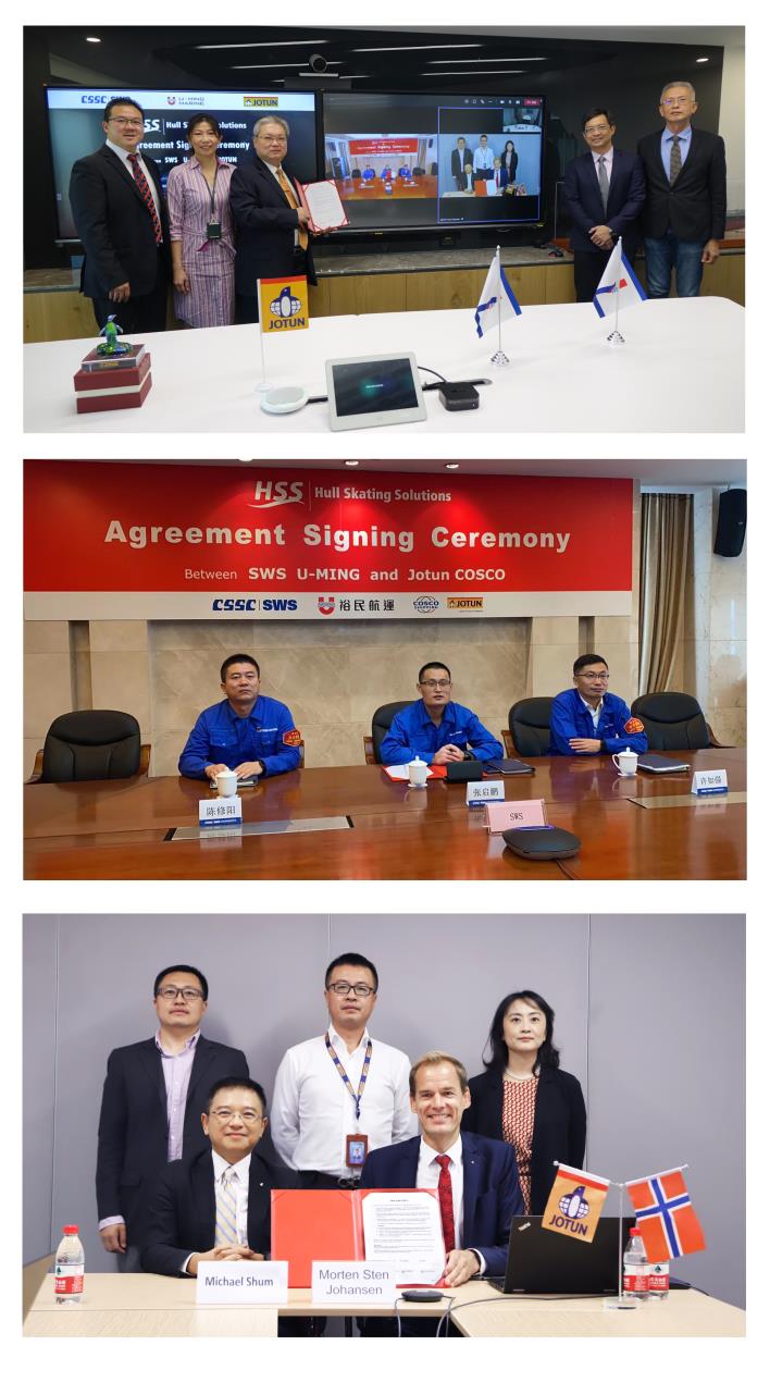 U-Ming, SWS and Jotun have signed commercial agreement for the groundbreaking Jotun Hull Skating Solutions (HSS) for U-Ming's 190,000 dwt dual fuel bulk carrier newbuilding project at Shanghai Waigaoqiao Shipyard (SWS) in Shanghai, China. The agreement was signed during a signing ceremony on Teams.