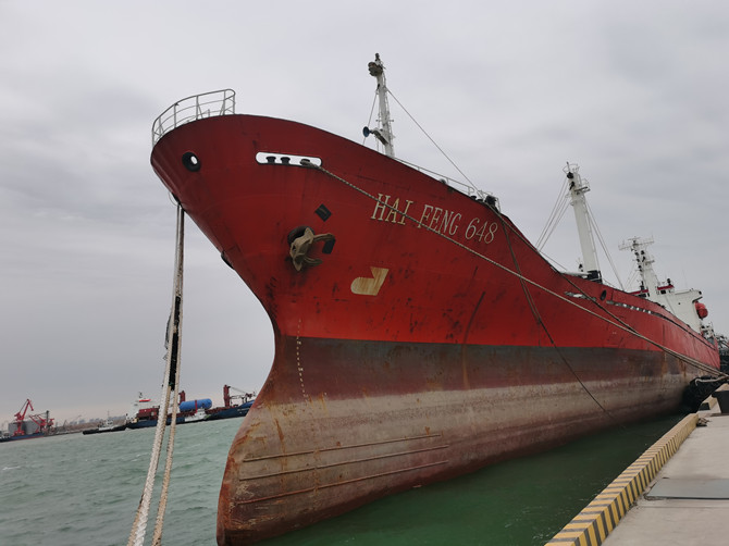 MV“HAI FENG 648”, Refrigerated Carrier; IMO: 8710132; Flag State: Panama; Class: CCS; LOA: 124.70m; MLB: 17.80m; MLD: 9.85m; Summer DWT: 6538t on 7.317m draft; Light Ship: 3230t; GRT:4939; NRT:3026; M/E: MITSUBISHI 6UEC45LA, 5150kW@158rpm; Generators: YANMAR M200L—ST*3 sets, 660PS@720rpm; Built Time: February 7th, 1988; Builder: Hakodate Dock Co., Ltd., Japan (Data above refers to the ship inspection certificates)