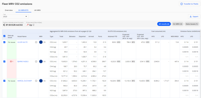 All-in-one flexible EU ETS solution with emissions data on both vessel and fleet levels available in dashboards and EU ETS voyage reports.