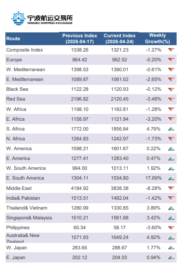 Ningbo Containerized Freight Index Weekly Commentary 2026 4.18-4.24 |