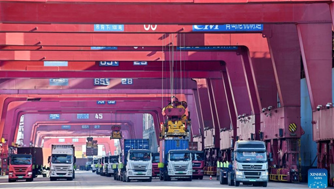 - On a chilly Wednesday morning, hundreds of trucks loaded with multi-colored containers queue in front of a 363-meter-long ship docked at a terminal at the Qingdao port, East Chinas Shandong Province, forming a line that stretches for more tGlobal Times2023-03-02 13:38:52