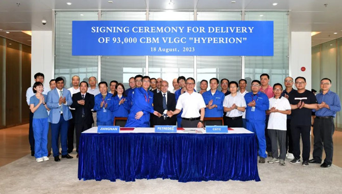 - photo from Jiangnan Shipyard On April 22, GAS CHANGJIANG, the first vessel of 99,000CBM VLEC series built by Jiangnan Shipyard for Wanhua Chemical Group, was officially named and delivered. Reportedly, 99,000 CBM VLEC is the largest capacitxinde marine news2024-04-24 15:49:07