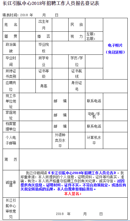 “简历”填写要求:自参加工作前最后学历起填写,包括起止年月、学校或单位名称、职位经历,起止年月要连贯;报考人员手写签名后将扫描件和word版同时发至长江引航中心。