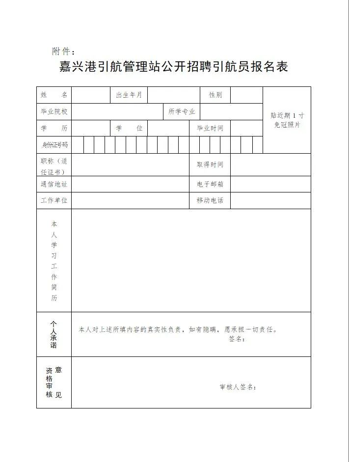 嘉兴港引航管理站公开招聘引航员报名表