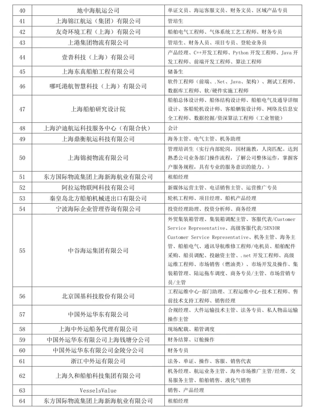 本次线上招聘活动岗位面向应届毕业生、社会人才,以及希望从事航运相关领域工作的专业人才。