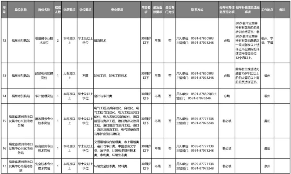 2024年福建省交通运输厅直属事业单位公开招聘工作人员岗位信息表