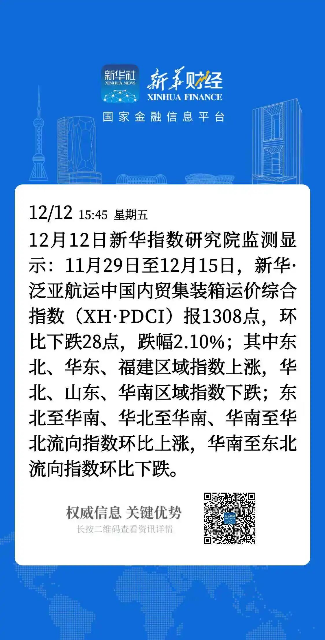 新华·泛亚航运中国内贸集装箱运价指数周报(XH·PDCI)2025.12.12