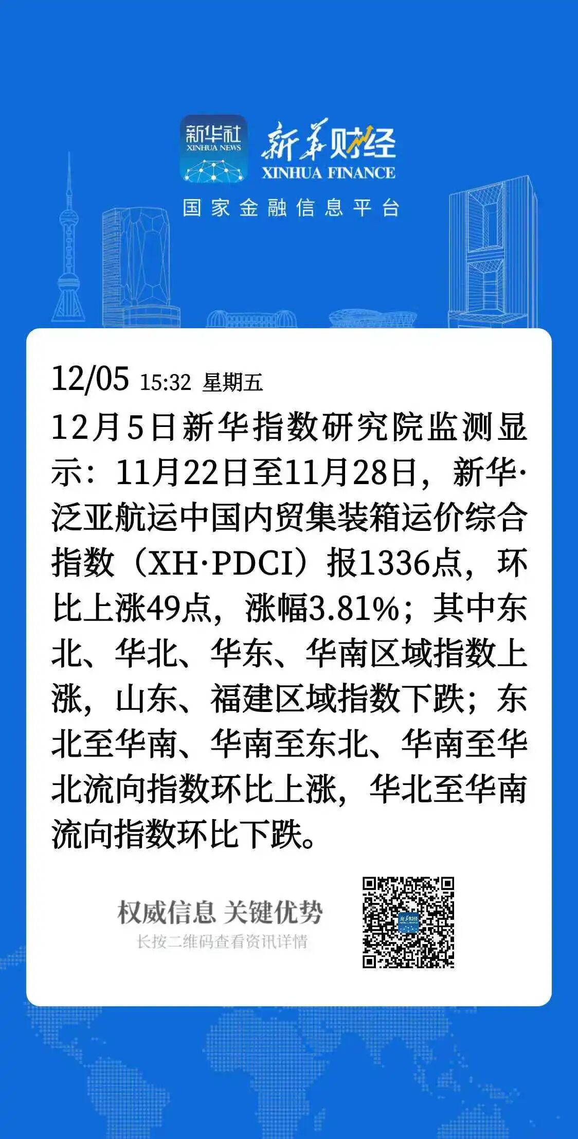 新华·泛亚航运中国内贸集装箱运价指数周报(XH·PDCI)2025.12.05