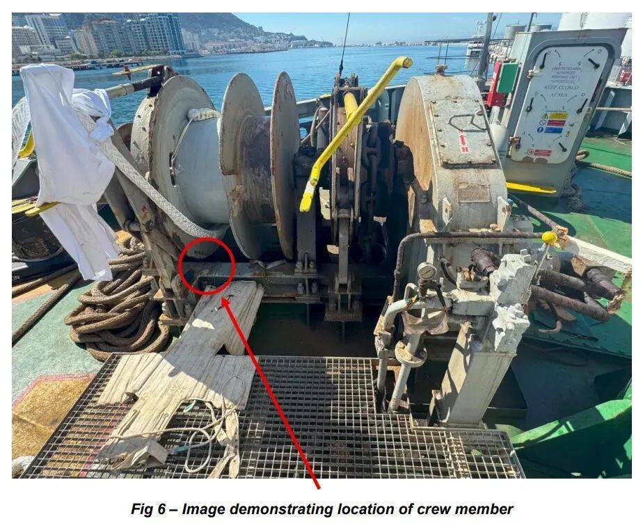 相反,建议考虑系泊甲板的整个区域为高风险区域,特别是来自缆绳的反弹,并且当进入这个高风险区域时,人员会意识到这一点。建议在系泊甲板做标识,例如:使用绳索、路障和标志,确保进入该区域的人员意识到风险的存在。