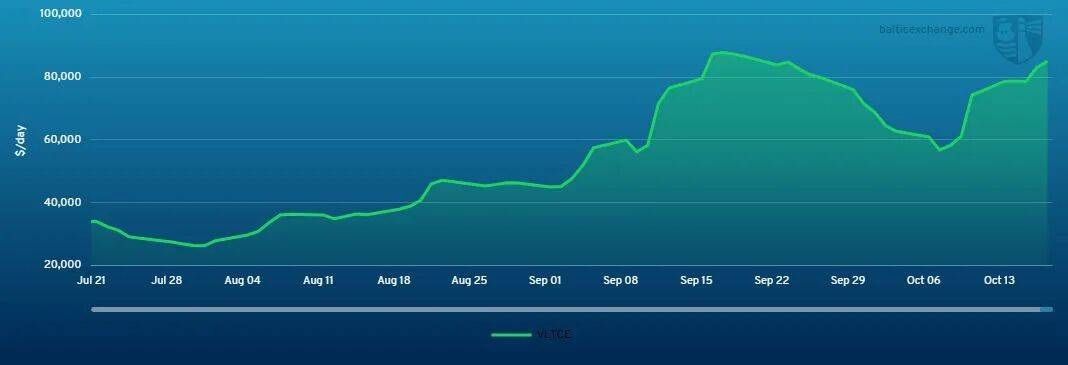 9月底部分成交日租一度突破10万美元/天,为2022年初以来新高;尽管随后有所回调,但本周仍稳于8万中段美元/天附近。这一“高运价—强情绪—成交活跃”的正反馈,正推动资产估值与交易热度同步抬升。