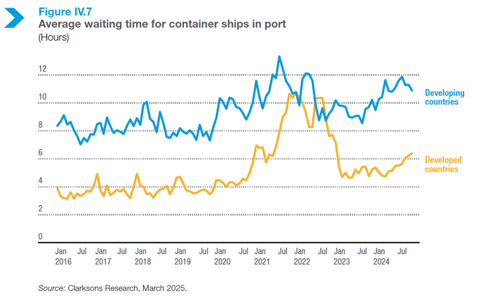 效率差距也在扩大:发达国家港口平均等待时间为6.4小时,而发展中国家高达10.9小时。