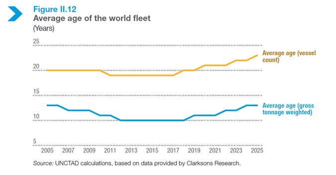 船队老龄化加剧,发展中国家船龄是发达国家两倍以上