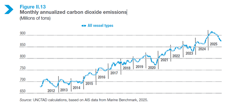 近日,联合国贸易和发展会议(UNCTAD)发布了《2025年海运述评》。报告基于2024年1月至2025年6月的数据,对全球海运业进行了全景式观察。