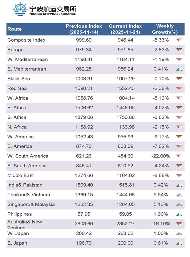 Ningbo Containerized Freight Index Weekly Commentary 2025 11.15-11.21 |