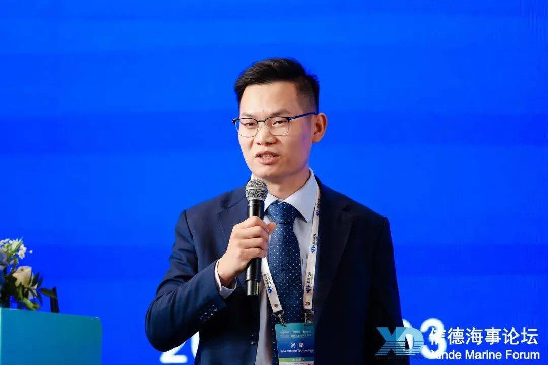 Silverstream Technologies 技术销售经理 刘成 以《重塑绿色航运未来:空气润滑引领能效技术新格局》为题,他以操作原理为切入点,说明空气润滑系统如何通过在船底形成微气泡层来减少摩擦阻力,并展示不同船型的节能表现。