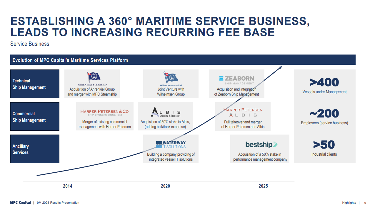 MPC Capital在2025年继续推动其海事服务平台的整合和扩展。通过对Zeaborn Ship Management的全面整合,公司在干散货、油轮及集装箱等多个板块都建立了完善的技术管理能力,形成覆盖全生命周期的服务体系。