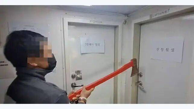 由于船长拒绝开门,三人随即转而破坏大副与三副船舱门,持续进行暴力行为。韩国海警指出,调查中还发现三人有意图“夺取船舶控制权”的言行,属于严重威胁船舶安全的行为。