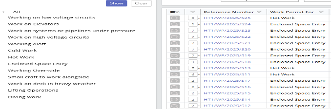 同时,我们签发了25份作业许可,每份许可都附带了详细的风险评估报告。作业许可涉及甲板作业、机舱维修、货物装卸等多个方面。