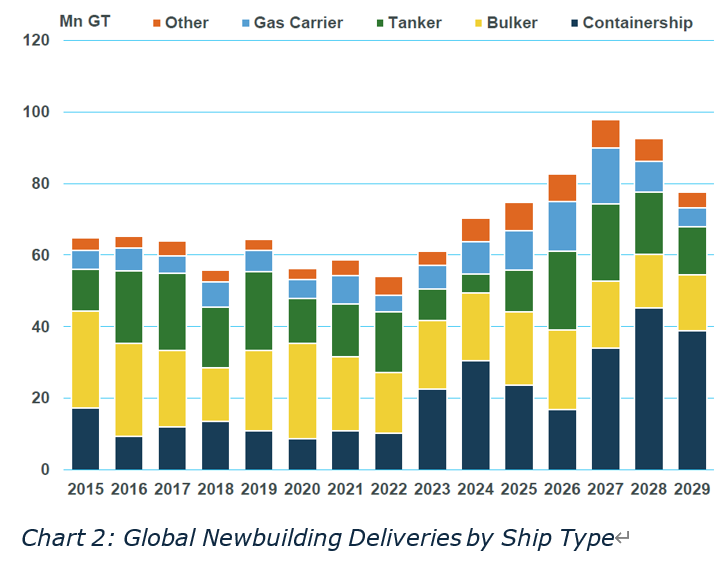 Nevertheless, as Chart 2 highlights, the orders already booked promise a rapid increase in deliveries during the next five years, with shipyard capacity expanding rapidly.