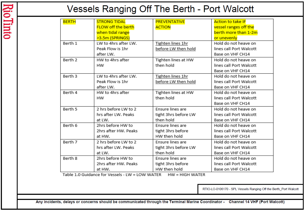 “Safety of Berthing and Unberthing Operations at Rio Tinto Terminals” 船舶靠离泊,系泊缆绳的准备,系,解拖轮缆绳的注意事项需核实确认签字回传代理。