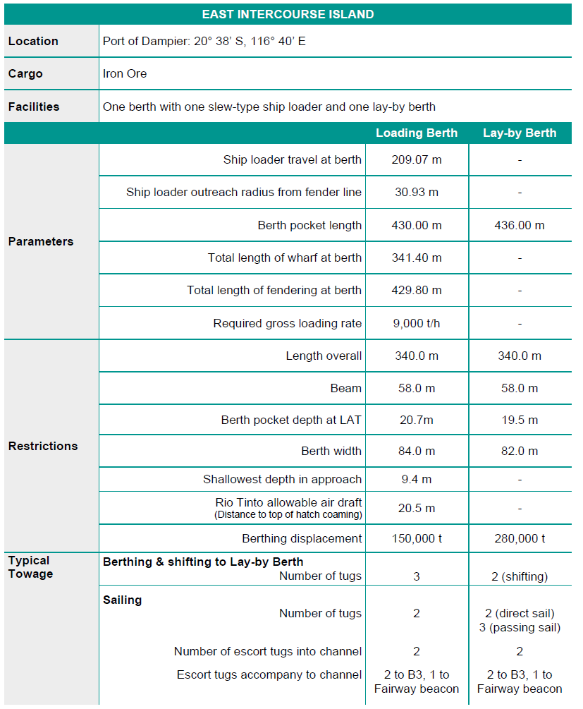 Dampier 力拓泊位(Parker point/East intercourse island)的水深信息: