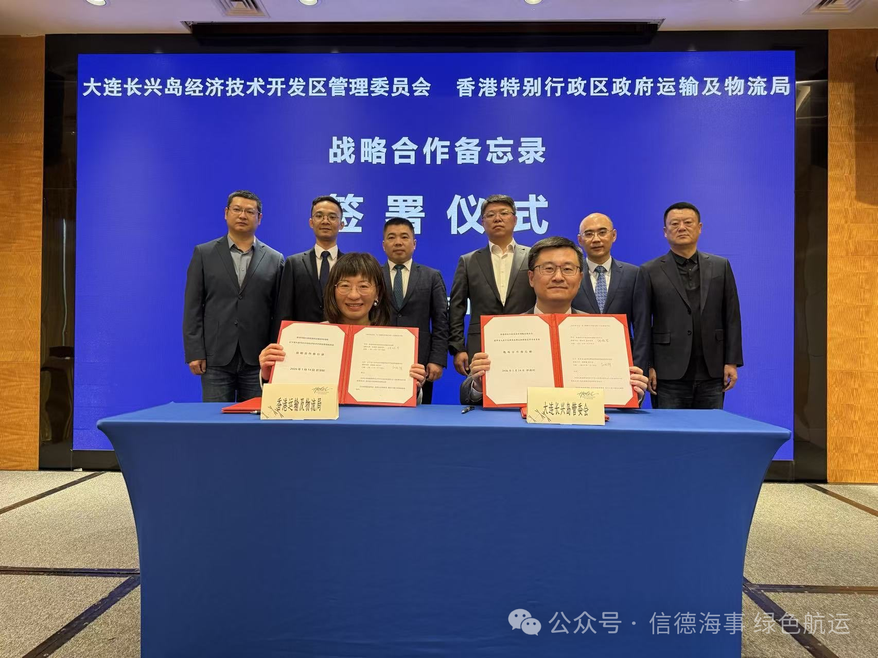1月14日,香港运输及物流局海运及港口发展专员陈婉雯与大连市长兴岛经济技术开发区管理委员会副主任胡国栋签署合作备忘录,双方将深化在绿色能源贸易方面的协作,推动完善绿色船燃供应链,并促进相关贸易发展。