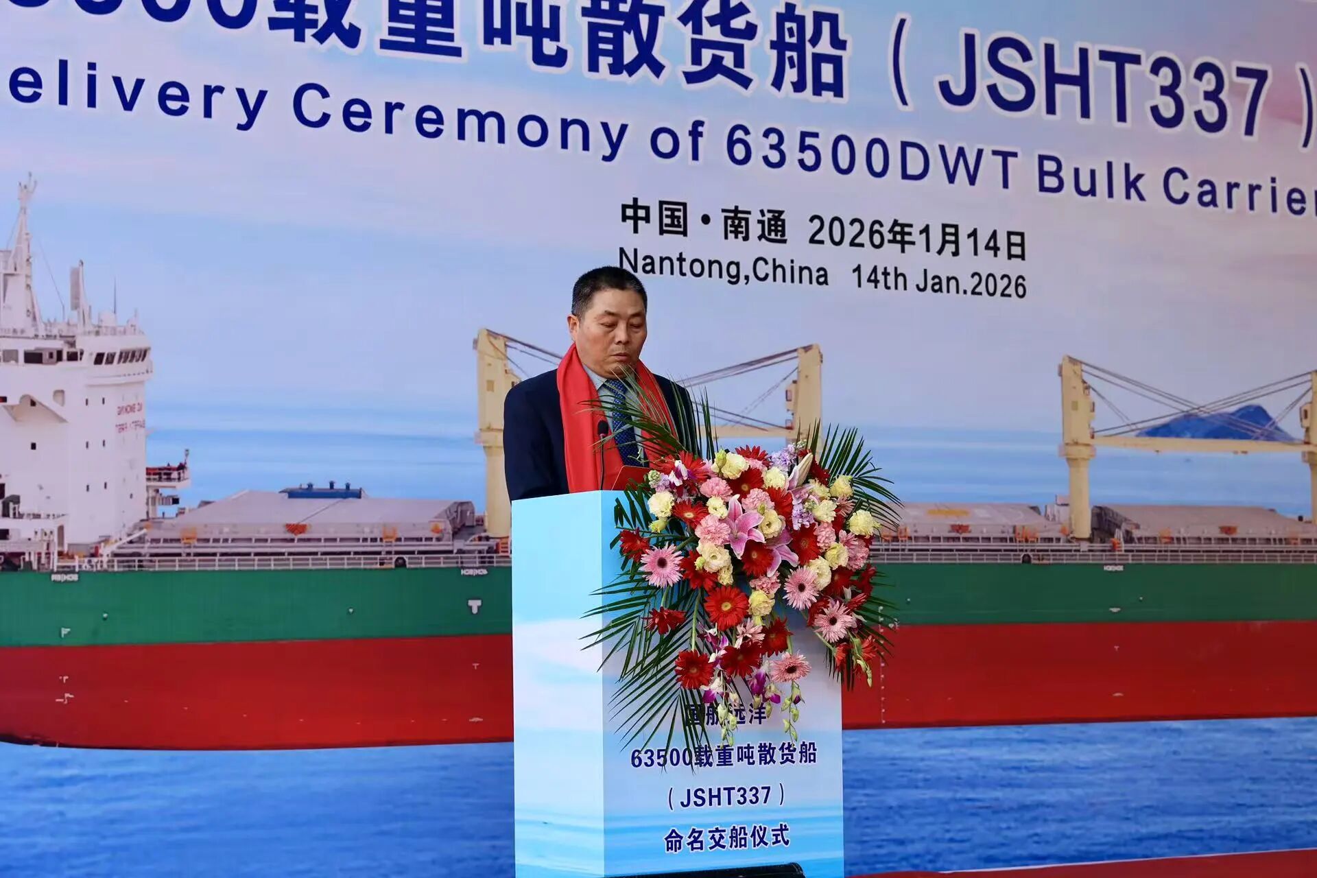 1月14日,江海潮涌,国航远洋新造首艘63500DWT散货船“GH PRIDE”轮交付仪式,在江苏南通隆重举行。