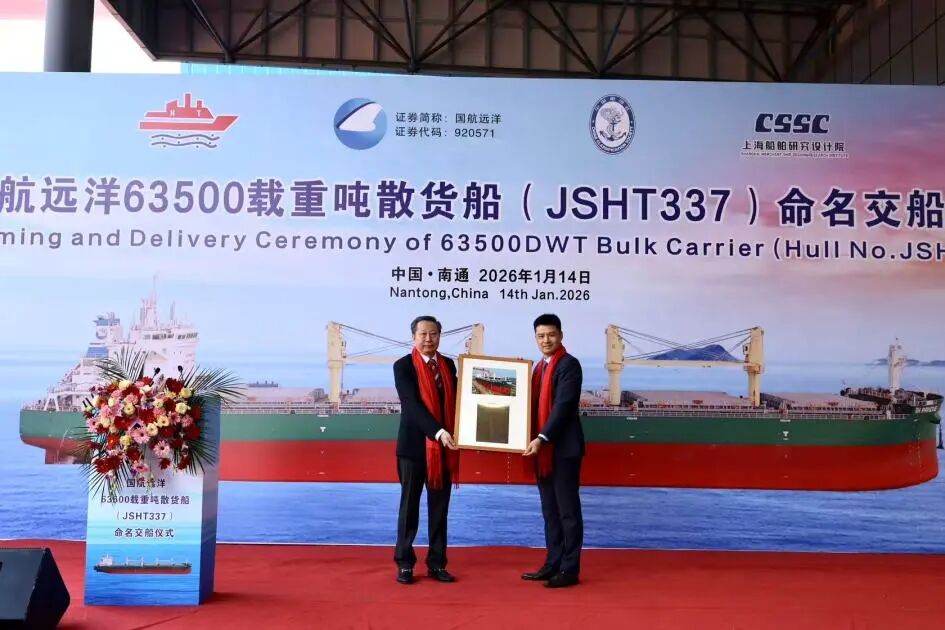 “GH PRIDE”轮作为63500DWT系列散货船的首制船,更是国航远洋2026年开年交付投入运营的第一艘新船。据悉,公司全年将迎来6艘新造船陆续交付,船队扩容升级步伐持续提速。