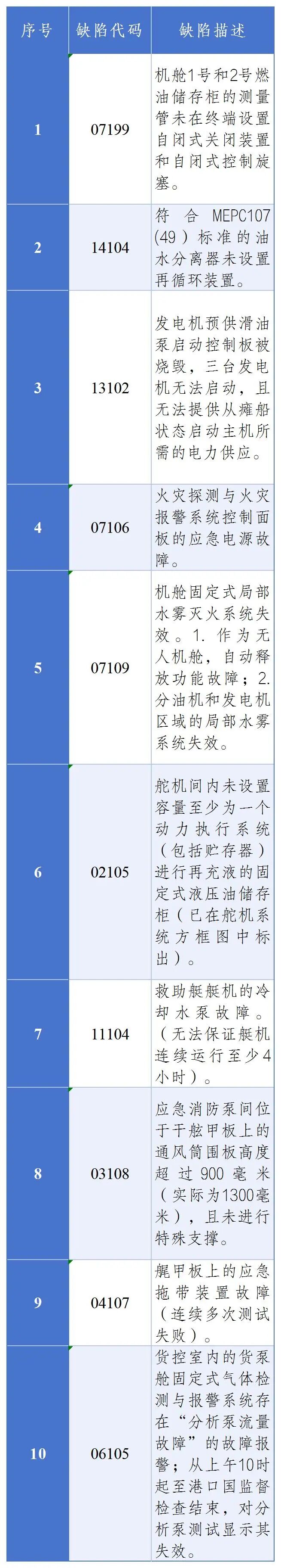 2025年大连港口国监督(PSC)典型滞留缺陷
