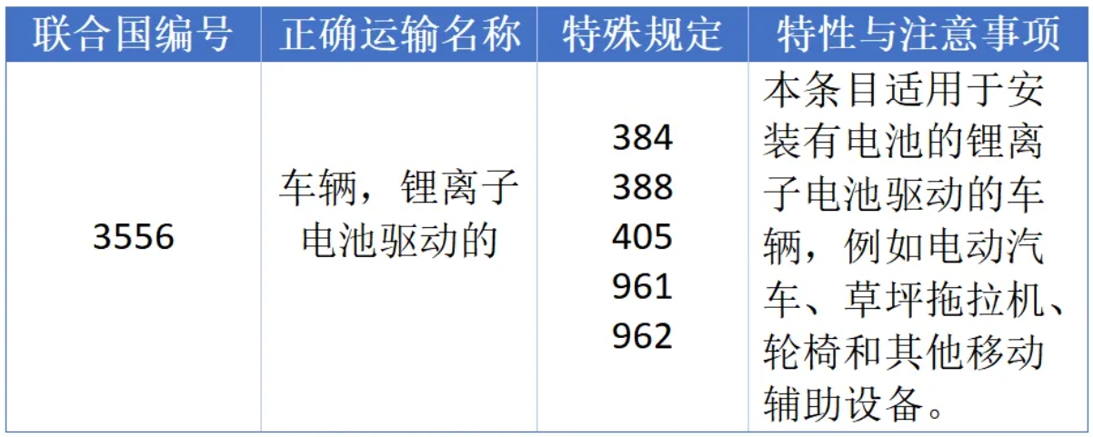 UN3556:车辆,锂离子电池驱动的。