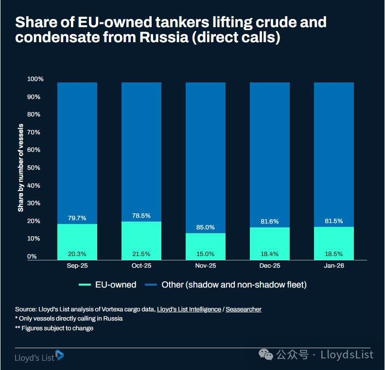 根据《劳氏日报》的分析,上个月欧盟拥有或控制的油轮仍占俄罗斯装运量的19%,其中绝大多数由希腊实体控制。