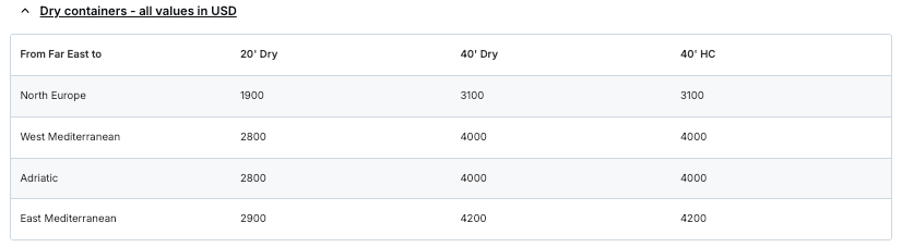 亚洲至地中海和北非:在3月1日至14日期间适用新FAK费率,短期运价波动明显。