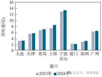 特色航运服务业焕发活力。船舶交易方面,2024年,浙江拍船网船舶交易股份有限公司完成船舶交易额102亿元,同比增长26.4%,规模稳居全国第一。船舶供应方面,2024年,宁波舟山港保税燃料油的加注量达到793.1万t,同比增长12.6%,其中宁波港域加注量67.1万t,舟山港域加注量726万t。舟山成功获批全国生物柴油推广应用试点,并实现LNG、生物燃料的常态化加注,成功实现生物燃料混兑政策落地,至2024年12月,宁波舟山港累计完成LNG加注业务14艘次,加注量超6万m3。航运金融方面,2024年,宁波舟山有73家银行提供港航经济相关产业贷款服务,航运产业贷款余额1 223.7亿元,同比增长14.4%。航运保险保费收入11.7亿元,同比增长6.2%。2024年,浙江省海港集团牵头完成世界一流强港建设发展基金组建,将以港航产业生态为基础,重点支持港产城贸联动发展、航运服务发展、高端绿色船舶建造、航运大数据软件开发与运营等。