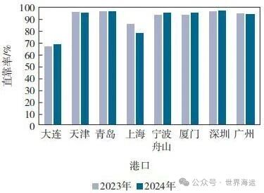 图3 各港口8 000 TEU以上集装箱船舶直靠率