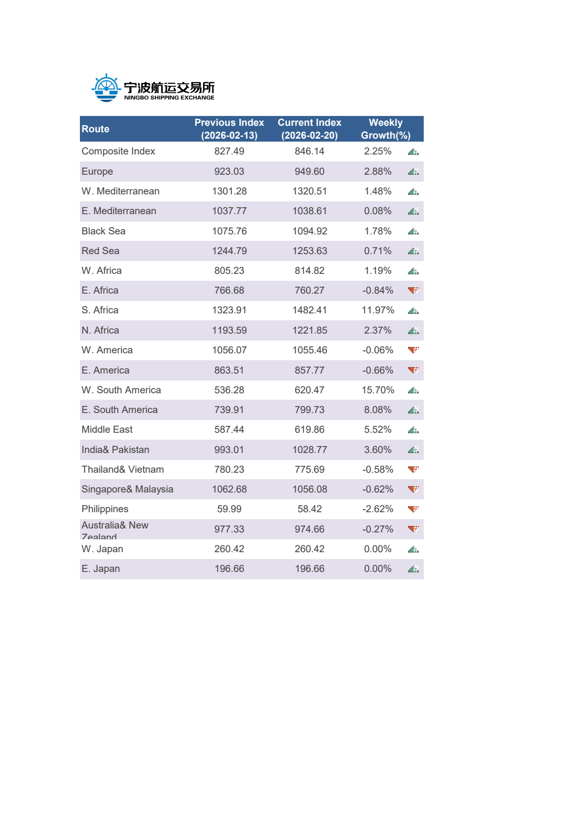 Ningbo Containerized Freight Index Weekly Commentary 2026 2.14-2.20 |