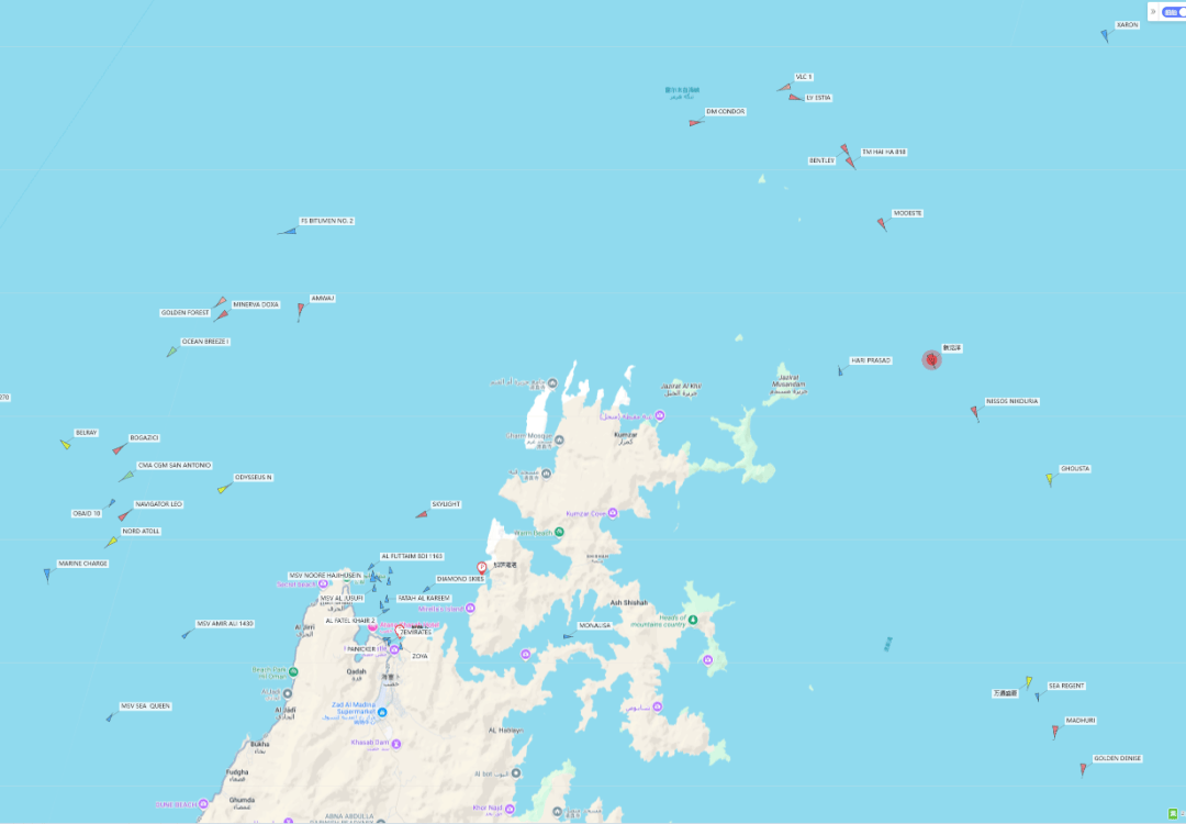 在航运实务中,这类“速度归零”的集中现象,往往对应船东/租家在风险快速上行阶段采取的标准动作:在进入高风险水域前“挂起等待”、漂航观望或就近锚泊,以避免误入冲突外溢区、遭遇袭扰或电子干扰造成航行安全与合规风险。