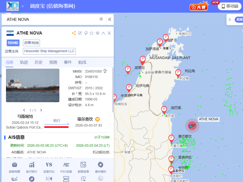 最新一起被点名的事件是一艘名为ATHE NOVA遭遇袭击。援引海事安全公司Vanguard Tech称,这艘2,915载重吨、1998年建造、悬挂洪都拉斯船旗的油轮在霍尔木兹海峡附近遇袭后起火;伊朗伊斯兰革命卫队(IRGC)在声明中称该船遭“两架无人机”击中。该轮由迪拜的Hessonite Ship Management拥有并管理,事发后船东方暂未公开回应。