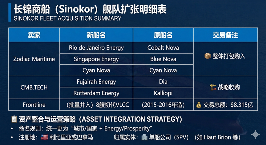 基于上述对基本面的深刻理解,在2025年底-2026年初极短时间内,Sinokor迅速完成了一场极具冲击力的资产重组:一方面与MSC达成集装箱船队出售交易,快速回笼大额现金;另一方面同步出手部分散货船资产,进一步腾挪资金,汇聚了数十亿美元资产;随后便将筹集到的资金几乎无缝转入VLCC市场,通过密集买入二手船和补充期租运力,在短时间内掀起一轮罕见的“扫货潮”,其资金动作之快、资产切换之猛,几乎就是把退出箱运和缩减散货所换来的全部筹码,直接压向了VLCC。。
