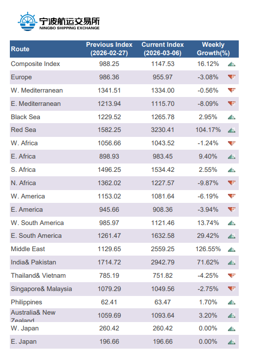 Ningbo Containerized Freight Index Weekly Commentary 2026 2.28-3.6 |