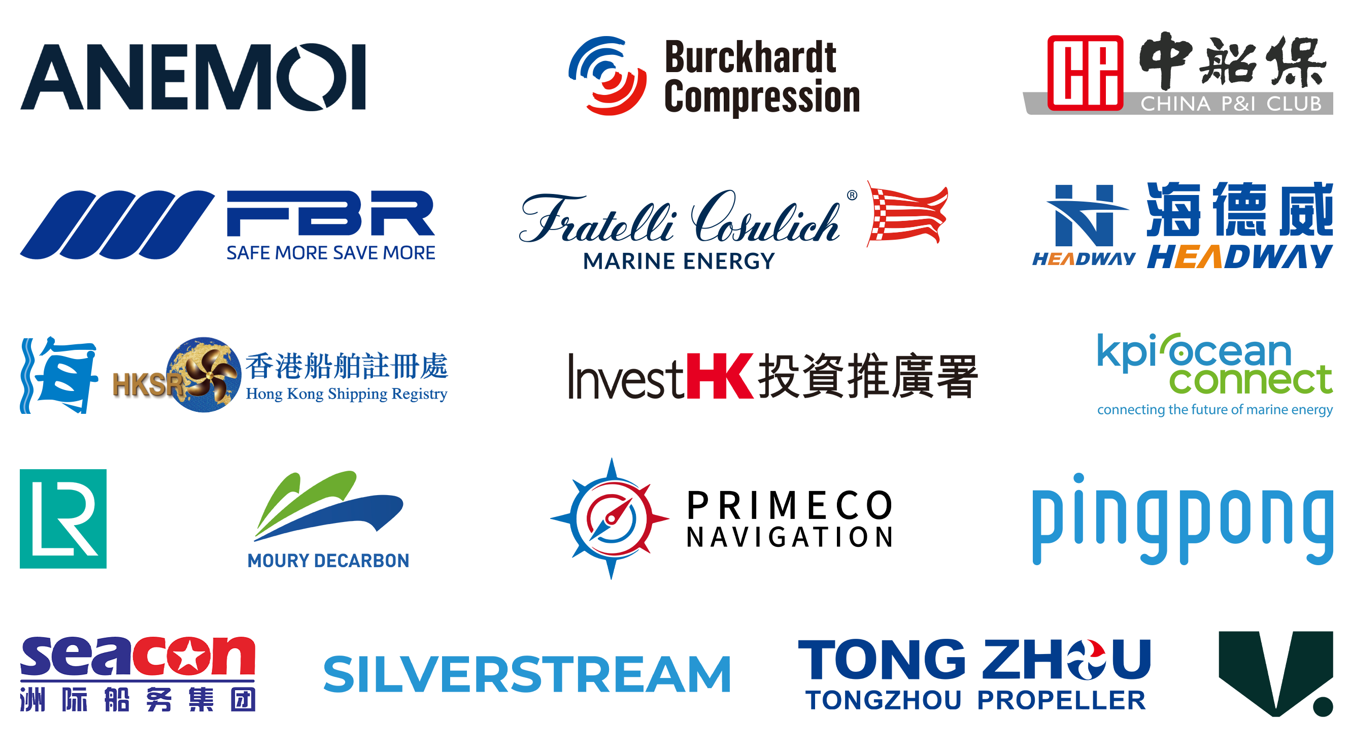 赞助单位:Anemoi Marine Technologies、布克哈德压缩机、海德威科技集团(青岛)有限公司、杭州乒乓智能技术有限公司(PingPong收款)、KPI OceanConnect、泓通航运有限公司、劳氏船级社、卯瑞低碳科技(上海)有限公司、Silverstream Technologies、卫狮集团、香港特区政府海事处、香港特区政府投资推广署、镇江同舟螺旋桨有限公司、中国船东互保协会、洲际船务集团控股有限公司