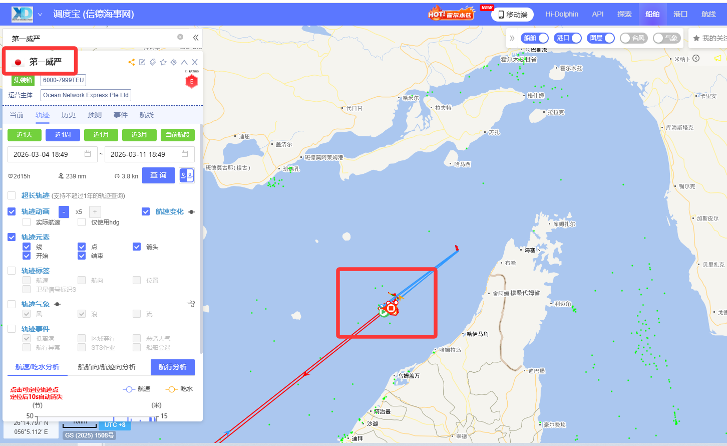 15.3月11日,日本旗集装箱船 One Majesty在阿联酋哈伊马角西北约25海里处遭疑似不明投射物击中。所有船员安全,正驶往安全锚地。(相关阅读:突发!霍尔木兹海峡,一艘日本旗大型箱船遭遇袭击)